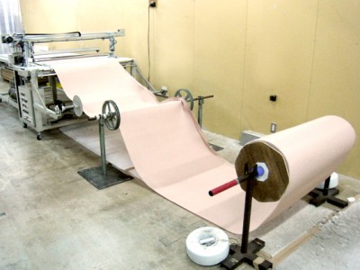 イトウニットでは、「カットマシーン」1台があります。ボンディング加工でロール状に仕上がった製品を、一定の長さにカットすることができます。